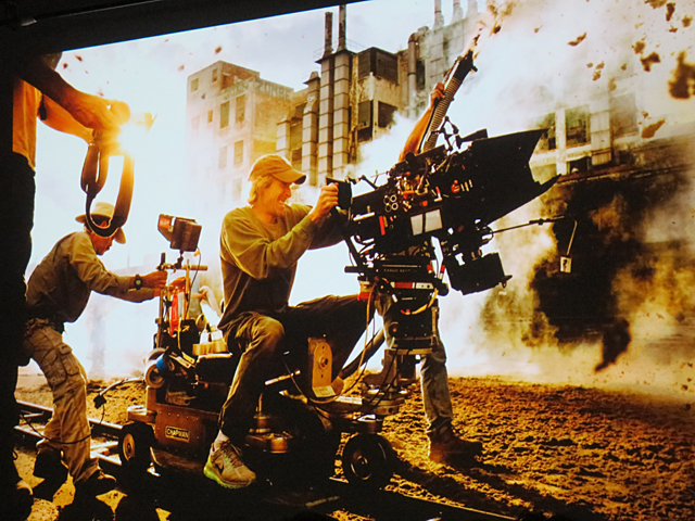 - マイケル・ベイ監督に隠れてカメラが見えないが、EPICのSDI出力を利用して、モニターなどの他の機材を小型のバックパックに収納したミニマムなセットも用意した