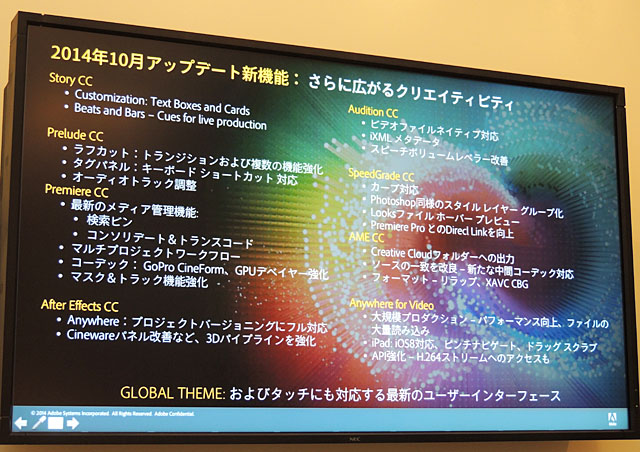 Adobeは先般開催されたIBC2014とAdobe MAX2014において、映像関連技術の大幅なイノベーションを公開した。